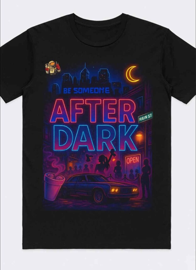 Turn heads with the Be Someone After Dark Neon Tee, inspired by Houston’s vibrant nightlife and electric street culture. This bold graphic design features glowing neon accents, a city skyline, and a classic Main St. sign — capturing the energy of the city after hours.