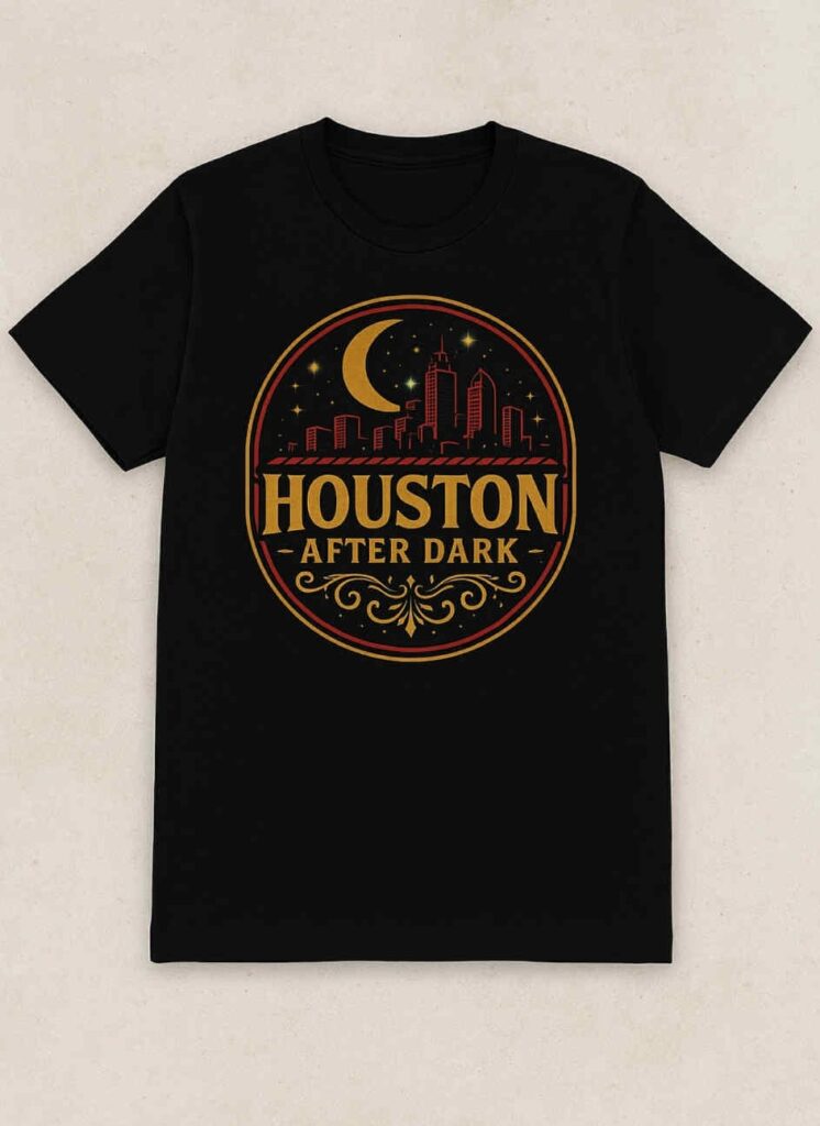 Bring the energy of Houston’s nightlife to your wardrobe with the Houston After Dark Classic Tee. Featuring a bold crescent moon, city skyline, and vintage-inspired emblem, this shirt captures the vibe of the city after sunset.